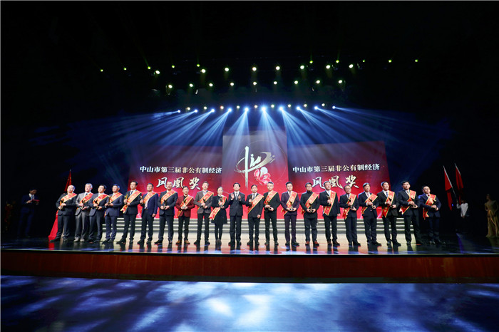 致敬時(shí)代弄潮兒,弘揚(yáng)企業(yè)家精神,12月23日晚,中山市第三屆非公有制經(jīng)濟(jì)鳳凰獎(jiǎng)晚會(huì)在中山市文化藝術(shù)中心大劇場(chǎng)舉行。晚會(huì)現(xiàn)場(chǎng)舉行了隆重的頒授儀式,中山金馬董事長(zhǎng)鄧志毅先生受邀出席并獲版“杰出貢獻(xiàn)企業(yè)家”獎(jiǎng)項(xiàng)。