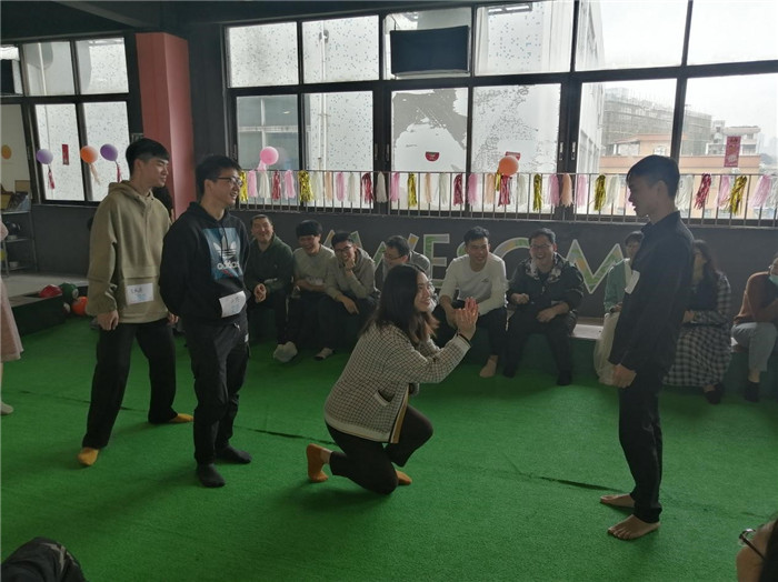 活動精心設(shè)計(jì)了自我介紹、互動游戲等豐富多彩的活動環(huán)節(jié),調(diào)動起62名青年男女們的熱情參與,在活動開始前主持人介紹了到場嘉賓、活動流程、進(jìn)行隨機(jī)分組,組成的4個(gè)隊(duì),每名隊(duì)員依次進(jìn)行自我介紹相互認(rèn)識,推選隊(duì)長,并設(shè)計(jì)出屬于自己的隊(duì)名“乘風(fēng)破浪”、“最襯打工人”、“黑色向日葵”、“龍馬精神”,4個(gè)小隊(duì)經(jīng)過接力拼圖、T恤氹氹轉(zhuǎn)、你演我猜、射擊保齡球等符合青年人的游戲,全場氣氛一度進(jìn)入新的高潮,給青年男女們更多接觸和交流的機(jī)會,也充分展現(xiàn)青年們健康向上、富有活力的良好風(fēng)貌,“最襯打工人”隊(duì)依靠大家默契的配合取得勝利。中午以自助餐的形式大家圍坐在一起,輕松愉悅的用餐氛圍,使男女青年們很快熟絡(luò)起來,并增進(jìn)了友誼。