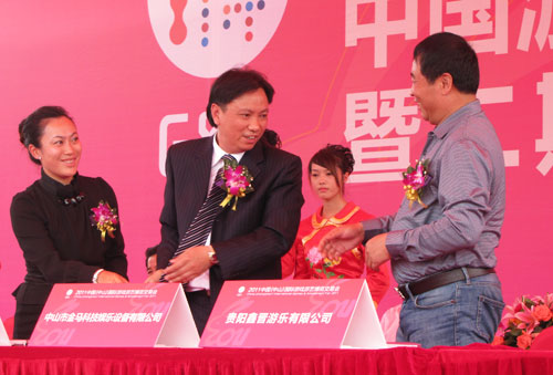 在11月3日游博會(huì)開幕式上,現(xiàn)場舉行了中山市游樂設(shè)施無損檢測中心的揭牌儀式,此舉在為中山游樂企業(yè)培養(yǎng)專業(yè)人才提供便利的同時(shí),更將為中山游樂行業(yè)的發(fā)展提供強(qiáng)勁的助力;此外,大會(huì)也就廣東省游戲游藝行業(yè)重點(diǎn)企業(yè)、骨干企業(yè)獎(jiǎng)等獎(jiǎng)項(xiàng)頒發(fā)了獎(jiǎng)牌。在業(yè)界的一致認(rèn)可下,中山市金馬科技娛樂設(shè)備有限公司獲得了廣東游戲游藝行業(yè)重點(diǎn)企業(yè)的殊榮。當(dāng)日下午,分會(huì)場中山港口龍城國際舉行了中國游戲游藝產(chǎn)業(yè)基地巡禮及二期項(xiàng)目奠基慶典儀式。巡禮儀式上,我司分別與成都國色天香旅游投資有限公司以及貴陽鑫晉游樂有限公司簽署了游樂設(shè)備采購合同,簽約總額達(dá)到1.1億元人民幣。最后,在一片熱烈的掌聲中,龍城國際二期項(xiàng)目順利奠基,我司鄧志毅董事長也參與了奠基儀式。在此后的兩天里,游博會(huì)迎來了客流高峰,并于11月5日的開放日中達(dá)到最高,不少市民一家大小前往游博會(huì)現(xiàn)場,紛紛體驗(yàn)最新的科技游樂設(shè)備。