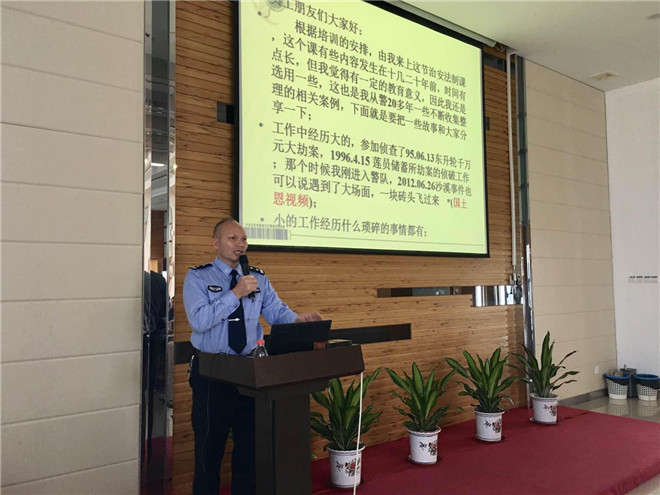 隨后由宏基派出所警官代表為新員工帶來治安法制教育,通過分享其豐富從警生涯中遇到的真實(shí)案件,講述違法犯罪的嚴(yán)重后果,警示新員工嚴(yán)格遵守國家法律犯規(guī),做合格的守法公民。接下來保安隊(duì)代表結(jié)合公司消防安全規(guī)定,通過講述消防安全的理論和實(shí)際自救與救援方法流程,普及消防知識和提高新員工消防安全防范意識。