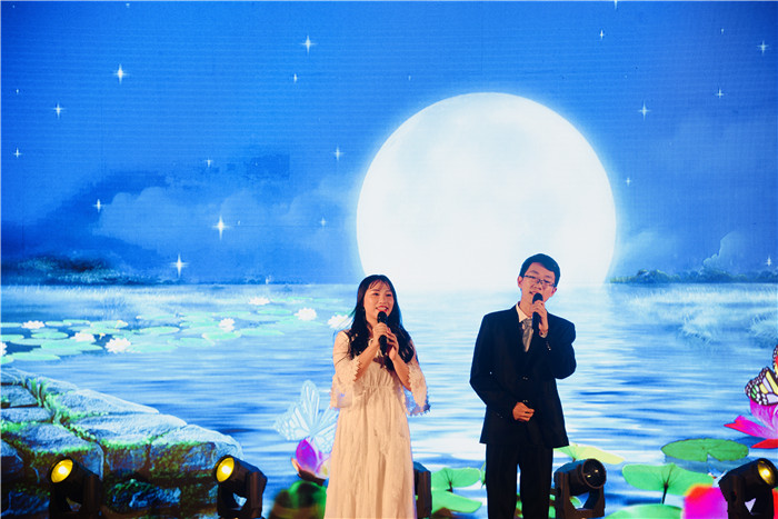 18:30,晚會(huì)正式開始。公司董事長鄧總、副總經(jīng)理曾總分別為晚會(huì)致辭,他們向全體同事和家屬、以及奮戰(zhàn)在海內(nèi)外現(xiàn)場一線的員工致以節(jié)日的祝賀和美好的祝愿,并鼓勵(lì)大家為了金馬公司更美好的明天再接再厲、奮力前行。緊接著是節(jié)目演出環(huán)節(jié),一個(gè)個(gè)由員工自導(dǎo)自演的精彩節(jié)目陸續(xù)登臺(tái)演出,快歌輕盈如溪,慢歌綿長有致,小品張弛有度,舞姿輕盈優(yōu)美。節(jié)目演出期間還穿插了激動(dòng)人心的有獎(jiǎng)競答互動(dòng)環(huán)節(jié),企業(yè)文化知識(shí)與中秋趣味問答相互承接,知識(shí)與生活交融,在熱烈歡快的氣氛中,臺(tái)上臺(tái)下形成一片熱鬧歡快的海洋歌聲,晚會(huì)氣氛不斷推向高潮。