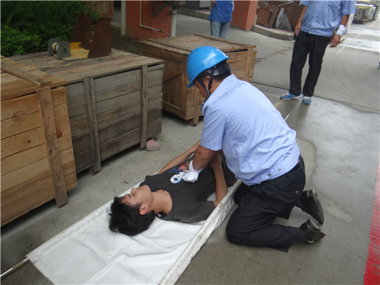 此次演練歷時(shí)半小時(shí),共分為四部分。第一部分是模擬火災(zāi)事故現(xiàn)場(chǎng),救火組成員即刻切斷電源,并用水帶水槍及滅火器進(jìn)行滅火操作。第二部分是人員疏散組成員在確認(rèn)發(fā)生火警后,趕到往H棟車(chē)間各層樓梯“安全出口”處,組織疏散現(xiàn)場(chǎng)人員有序撤離至安全區(qū)域,保證樓道暢通,防止踩踏事故。第三部分是人員物資搶救組成員趕到三樓事發(fā)現(xiàn)場(chǎng),配合救火組清理現(xiàn)場(chǎng)危險(xiǎn)物品,開(kāi)辟防火隔離帶,救護(hù)傷員,同時(shí)采用人工呼吸法作簡(jiǎn)單救治。第四部分是照明、通訊組成員配合其他三組負(fù)責(zé)場(chǎng)地照明、模擬報(bào)警、接警車(chē),并在滅火后留現(xiàn)場(chǎng)繼續(xù)監(jiān)查,防止二次火災(zāi)發(fā)生。