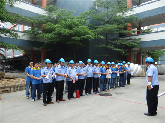 2017年5月20日下午,公司開(kāi)展本年度第一次消防演練。此次演練以玻璃鋼H棟車(chē)間發(fā)生火災(zāi)事故進(jìn)行模擬處理,參與演練對(duì)象為公司保安員、消防重點(diǎn)關(guān)注部門(mén)玻璃鋼部分新員工及機(jī)械車(chē)間油漆班全體員工。整個(gè)消防演習(xí)由人力資源中心保安隊(duì)隊(duì)長(zhǎng)組織并指揮,精益部主任全程監(jiān)督協(xié)助,旨在訓(xùn)練員工在面對(duì)異常火災(zāi)現(xiàn)象時(shí)能夠有條不紊地使用消防器材,冷靜地做出判斷及處理措施。