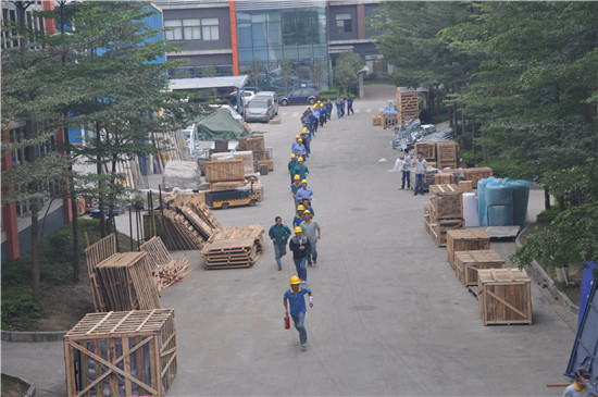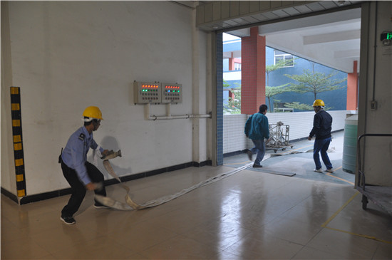 演習開始前,執(zhí)行指揮強調并要求參加演習員工須按公司消防預案,明確分工,高效且有序地實施疏散、滅火、救援等工作。隨著警報聲的發(fā)出,演習正式開始。所有參演人員在執(zhí)行指揮的任務分配下,迅速到底指定位置,相互配合,完成任務。救火組率先切斷電源,接水槍滅火;疏散組各組員按指定疏散線路組織人員有序疏散,防止踩踏事故;搶救組開辟防火隔離帶,救護傷員;通訊組模擬說明事故地址、接警車......在執(zhí)行指揮的指揮與引導下,整個演練過程既緊張、激烈,又有條不紊。