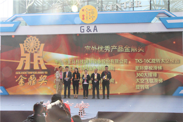 作為中國游戲游藝行業(yè)的龍頭企業(yè),中山市金馬科技娛樂設備股份有限公司對本次盛會全程關注支持,并設以恢弘的展位布置應邀入駐參展。先是在游博會開幕典禮上,金馬公司新產(chǎn)品“TKS-16C旋轉(zhuǎn)太空梭”,以其先進且創(chuàng)新的技術獲得“室外優(yōu)秀產(chǎn)品金鼎獎”;而后迎合游博會歷年秉承的創(chuàng)新、與時俱進理念,金馬公司在展會上展示了GJT-60A觀景塔、ZB-72A轉(zhuǎn)轉(zhuǎn)杯、3D互動軌道車等創(chuàng)新產(chǎn)品,引起眾多客商及觀眾的駐步與贊賞,也被多家新聞媒體廣為報道。
