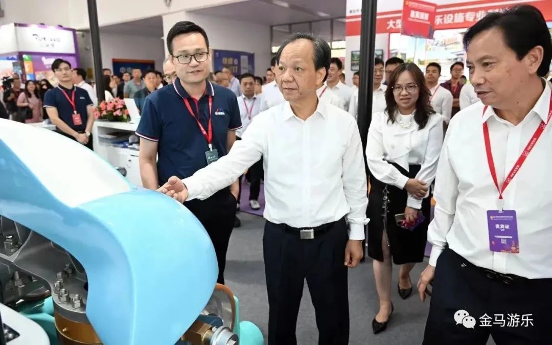 開幕式后,中山市委書記、市人大常委會(huì)主任郭文海一行領(lǐng)導(dǎo)蒞臨金馬游樂展位參觀指導(dǎo)。