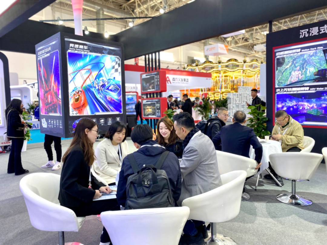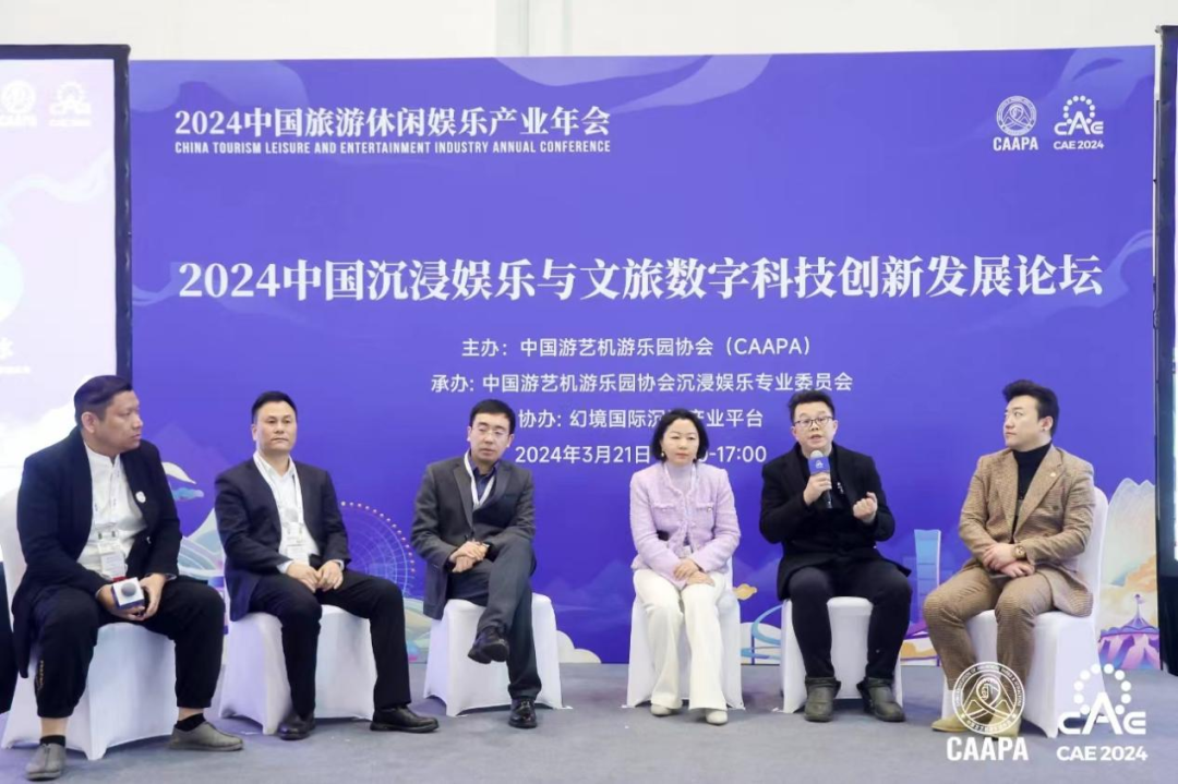 展會期間還同期舉辦了2024中國旅游休閑娛樂產(chǎn)業(yè)年會-2024中國沉浸娛樂與文旅數(shù)字科技創(chuàng)新發(fā)展論壇,公司副總經(jīng)理林澤釗作為受邀嘉賓出席并參與了“沉浸產(chǎn)業(yè)服務(wù)供應(yīng)鏈體系融合”主題圓桌討論,與業(yè)內(nèi)同仁就“技術(shù)創(chuàng)新是如何制造體驗賣點和驅(qū)動消費”、“面對2024年行業(yè)商業(yè)變量的應(yīng)對策略”等熱點話題展開探討。林澤釗副總經(jīng)理表示:在虛擬沉浸式項目中,創(chuàng)意概念的落地能力尤為關(guān)鍵,打造高沉浸感體驗極其考驗多維一體的技術(shù)集成能力,得益于金馬游樂多年技術(shù)投入,近年多個國內(nèi)首創(chuàng)虛擬沉浸項目順利落地,沉浸效果備受肯定與青睞;面對如今市場多元化、輕體量、快交付的需求特點,金馬游樂正通過技術(shù)平臺整合來加快創(chuàng)新技術(shù)成果轉(zhuǎn)化,源源不斷為市場供給新產(chǎn)品,引領(lǐng)行業(yè)向新而行。