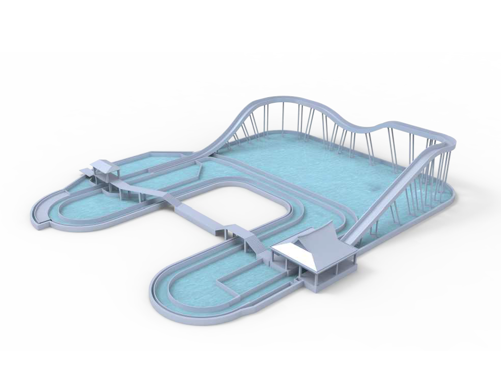 激流勇進設(shè)備提升?度17.8?,軌道蜿蜒??,抵達?坡制動段后經(jīng)過減速到達下沖段,進?快速下沖。乘客在游玩過程中,體會?速沖浪、失重、離?、浪激等多重刺激,其樂?窮。