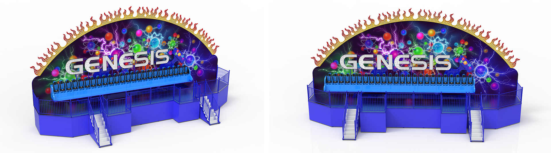 擺臂支撐座艙圓形運(yùn)動(dòng),也可以實(shí)現(xiàn)正反兩種通過最高點(diǎn)的運(yùn)動(dòng);占地面積小,外觀造型新穎;