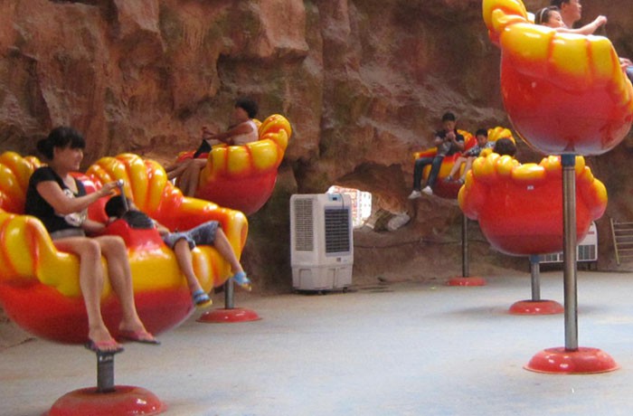 同時作升降、旋轉運動。整套設備由座艙、平臺、氣動系統、電氣控制系統等所組成。蝴蝶造型的玻璃鋼座艙,栩栩如生。設備伴隨著明快的音樂有節(jié)奏地上升和下降,座艙可以乘坐二人,座艙的旋轉由乘客自由操作。同一時間場地里的座艙此起彼伏,猶如一片蝴蝶歡快地上下跳躍、舞動,使人有如置身于大舞臺,盡情地翩翩起舞。