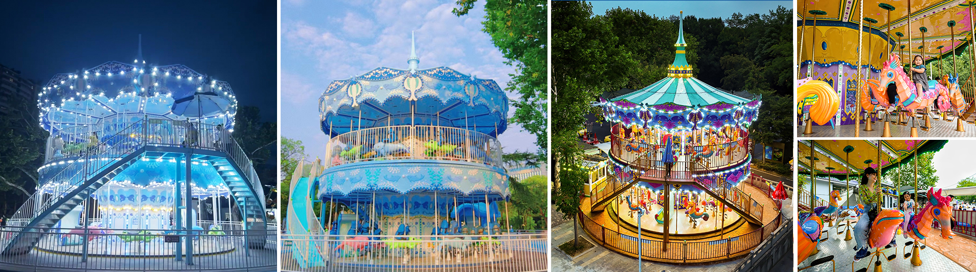 豪華雙層轉(zhuǎn)?是上、下層可單獨(dú)作旋轉(zhuǎn)運(yùn)動的裝飾豪華的轉(zhuǎn)?,采?歐式古典豪華的裝飾?格。蓬頂?shù)幕使诩馑睕_云宵,天花板、內(nèi)圍板鑲嵌著彩?浮雕,并配備彩燈。?匹及宮庭式??結(jié)合多彩的花飾,造型夢幻華麗?碧輝煌。