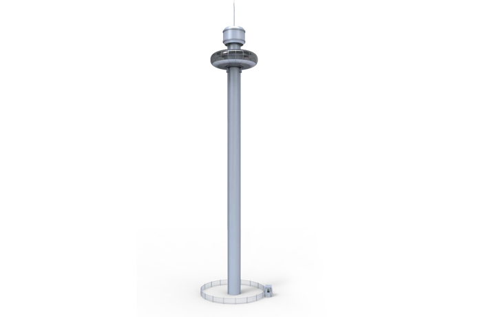 觀景塔可容納60人,運(yùn)營(yíng)高效。塔體配備配重裝置,抵消艙體大部分重量,降低提升所需功率,從而達(dá)到降低運(yùn)營(yíng)成本的效果。塔底配置緩沖裝置,為乘客提供輕緩的乘坐體驗(yàn),讓乘客在舒適的環(huán)境中飽覽周邊美景