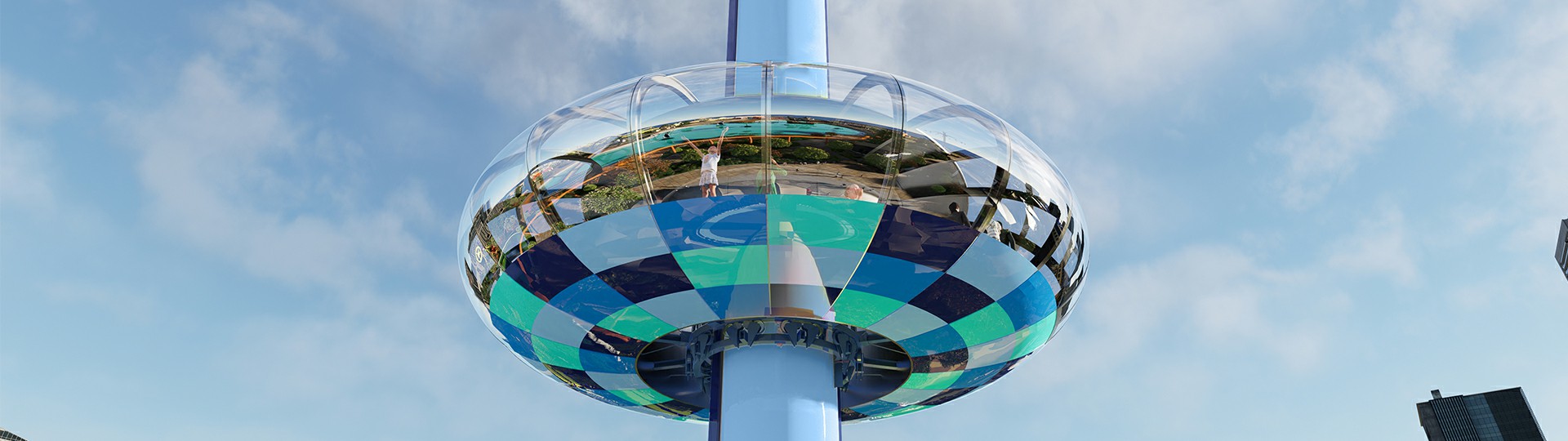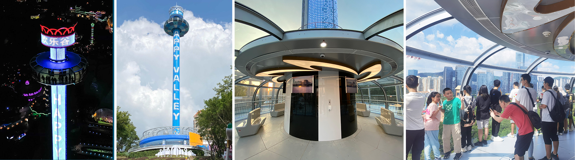 觀景塔擁有可容納100人的“甜甜圈”旋轉(zhuǎn)艙體,載客能力強(qiáng)。雙自動(dòng)門進(jìn)出口的設(shè)計(jì)便于快速上下客,運(yùn)營高效。乘客在旋轉(zhuǎn)艙中360°環(huán)繞式縱情飽覽四周美景,還可通過艙內(nèi)影音系統(tǒng)感受多元視覺盛宴。夜幕降臨燈光閃耀,璀璨奪目輕易打造夜場焦點(diǎn),成為聚客地標(biāo)。