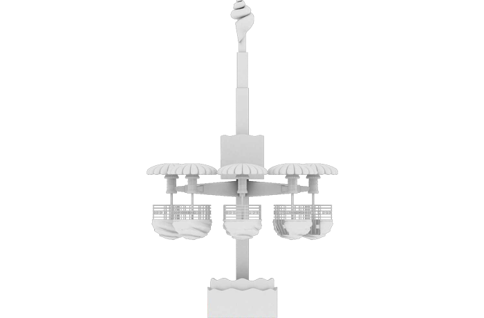 逍遙塔集旋轉(zhuǎn)、升降兩大運(yùn)動(dòng)形式于一體。設(shè)備啟動(dòng)后,座艙在升降時(shí)繞立柱中心軸旋轉(zhuǎn),同時(shí)座艙還可以自由旋轉(zhuǎn)。雙重旋轉(zhuǎn)感受搭配升降帶來(lái)的失重與超重感,為游客提供豐富的乘坐體驗(yàn)。