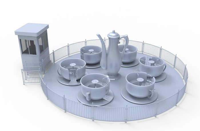 轉轉杯設備是由軌道、大盤、小盤及杯體組成,國潮主題外觀,乘客坐在杯中體驗多重復合轉動所帶來的旋轉樂趣。