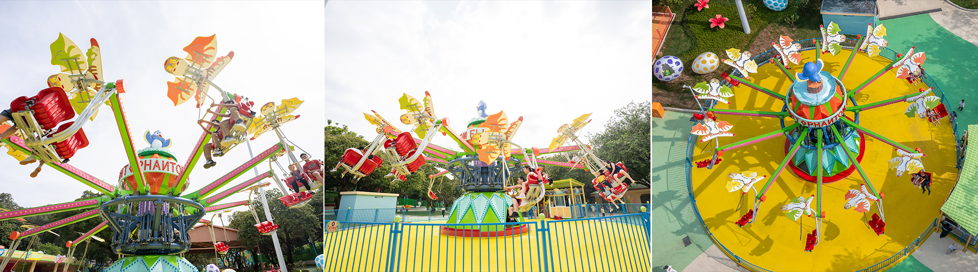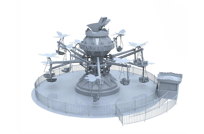 幻影飛行,以折紙風(fēng)車、千紙鶴和紙飛機(jī)系列為主題,讓人耳目一新的同時(shí)引起兒時(shí)回憶,引發(fā)共鳴。座艙能夠舒適的容納兒童和成人,擁有12個(gè)扶手,紙飛機(jī)底部擁有關(guān)于兒童主題涂鴉,乘客可以通過(guò)推拉他們面前的三?形控制桿控制紙飛機(jī),此外中央液壓系統(tǒng)擁有保持平衡的功能,無(wú)論乘客如何控制紙飛機(jī)的運(yùn)動(dòng),都能使其保持平衡飛行。