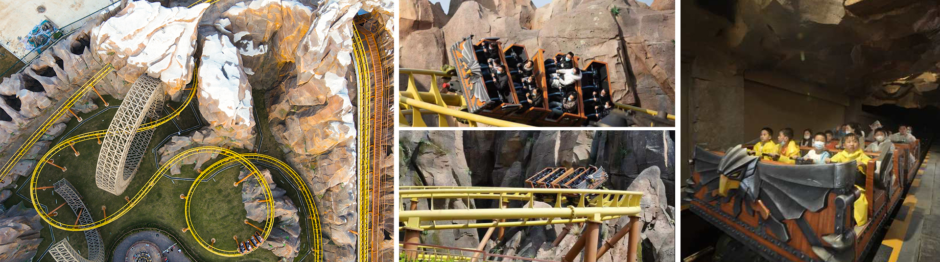 速降背沖過??是采?2次鏈條提升的礦??,結(jié)合影視技術(shù),運(yùn)?過程中包含動(dòng)感平臺(tái)、倒溜、“跳樓機(jī)”式的下墜軌道,為帶來與眾不同的過??新體驗(yàn)。