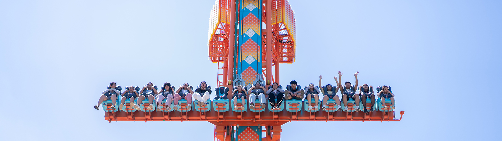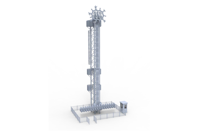 跳躍云霄以跳躍為主題,?六座座艙沿著豎直的?柱軌道作上升、下降和連貫的跳躍運(yùn)動(dòng),使乘客在超重與失重的過程中體驗(yàn)到跳躍樂趣。
