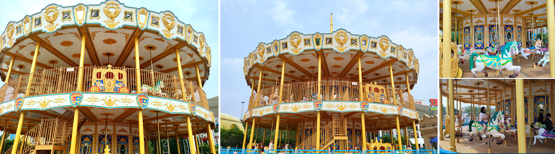 超?型豪華雙層轉(zhuǎn)?以其獨(dú)特的雙層結(jié)構(gòu)、豪華裝飾和超?的載客量?成為游樂園中的明星項(xiàng)?,為游客提供了既溫馨?浪漫的游樂體驗(yàn)。雙層轉(zhuǎn)?的上、下層可以獨(dú)?控制,滿?不同載客量的需求;絢爛燈飾效果,為游客打造?夜不同的?氛場景。