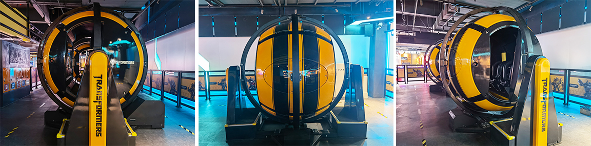 360滾艙是新型交互式動感體驗項目。乘客進(jìn)入球形座艙,壓桿壓好后,酷炫的座艙配合艙內(nèi)影視內(nèi)容繞X軸、Z軸在360°范圍內(nèi)做旋轉(zhuǎn)動作,讓乘客置身于超感官視覺體驗中