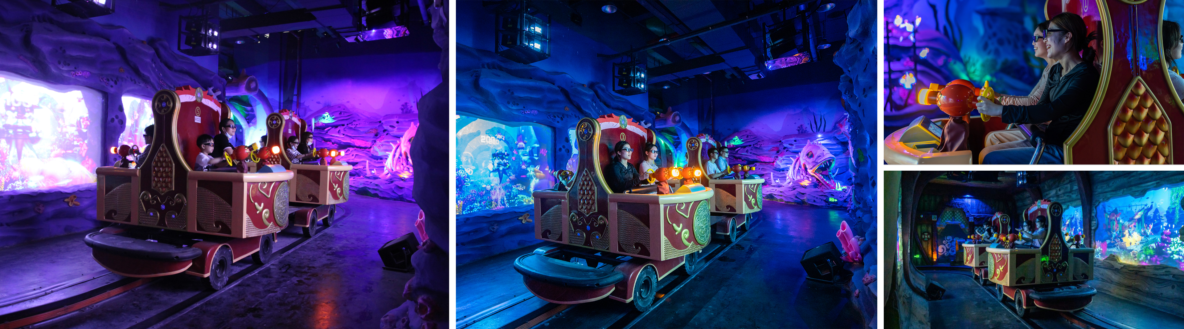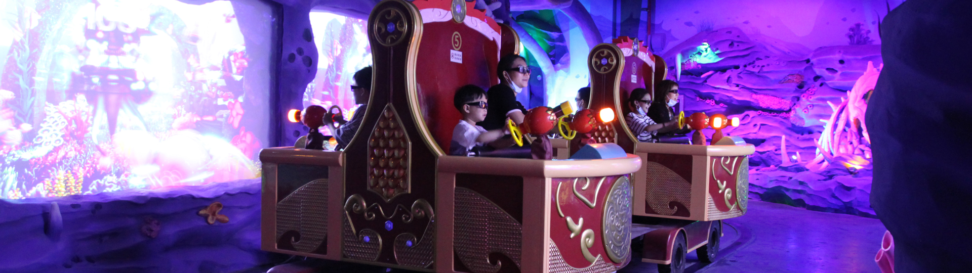 交互式黑暗乘騎游樂設(shè)備,是融合交互游戲、360度旋轉(zhuǎn)軌道車、主題景觀、多種特效等尖端技術(shù)于一體的室內(nèi)體驗娛樂項目,讓乘客在逼真的虛擬場景中進(jìn)行角色對抗,增加交互體驗。