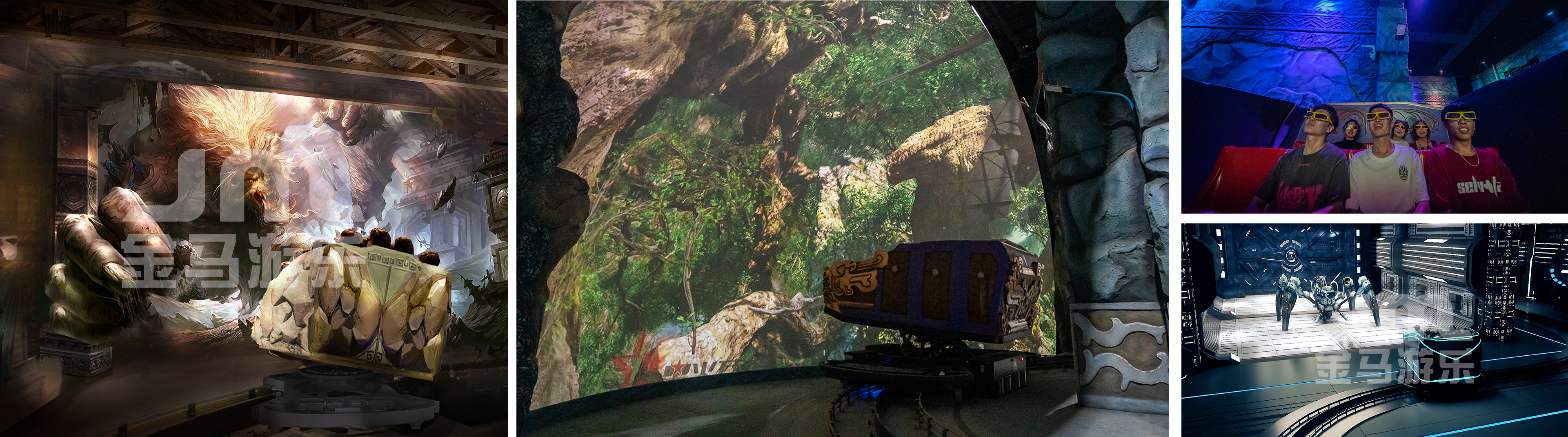 動(dòng)感黑暗乘騎采用創(chuàng)新型六自由度動(dòng)感騎乘設(shè)備,游客乘坐動(dòng)感座艙穿梭由主題景觀、高清影片、機(jī)模、特效、音效等組成的不同故事場(chǎng)景,是擁有高沉浸感的體驗(yàn)游樂項(xiàng)目。