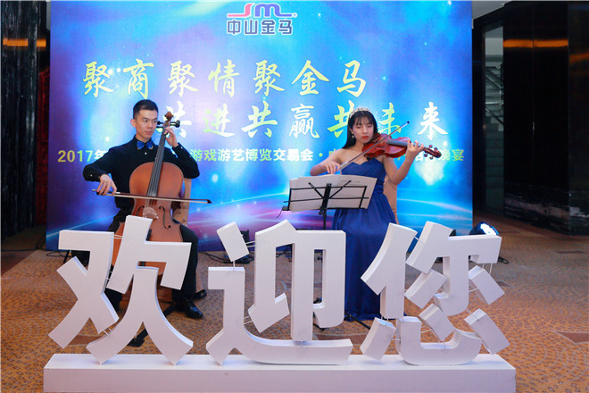 金色八月,熱情似火,有朋自遠(yuǎn)方來,逢盛事喜相聚。為了對即將召開的第十屆中國(中山)國際游戲游藝博覽交易會表示熱烈的祝賀,以及對多年來一直關(guān)心、支持金馬健康發(fā)展的合作伙伴和嘉賓表示誠摯的歡迎和衷心的感謝,8月10日晚,乘著行業(yè)盛會的東風(fēng),公司在中山喜來登酒店舉行了盛大的客戶招待晚宴。國內(nèi)外新來客商、嘉賓、媒體記者200余人應(yīng)邀出席,與公司管理層及員工代表們共同感受了一場精彩紛呈的盛宴,度過了一個充滿歡樂與活力的難忘之夜。