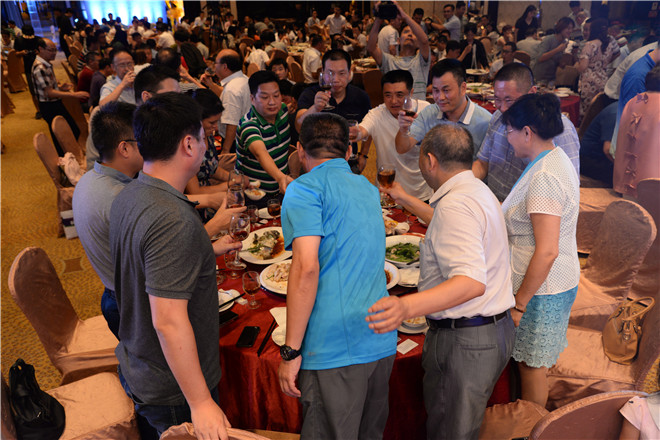 晚宴現(xiàn)場,公司全新拍攝的企業(yè)形象片正式對外展示,以緊跟時(shí)代腳步與公司發(fā)展軌跡的內(nèi)容,向眾客商、嘉賓及媒體呈現(xiàn)了一個突飛猛進(jìn)的金馬形象。在對2016年公司研發(fā)的新產(chǎn)品集錦進(jìn)行回顧時(shí),眾人更是生動形象地看到了一個實(shí)力金馬,正如劉喜旺總經(jīng)理的致辭所言“中山金馬追求又好又快的發(fā)展,追求厚積薄發(fā)式的飛躍產(chǎn)品厚積薄發(fā),量的積累已經(jīng)達(dá)到了質(zhì)的突變”。宴會上,滿堂燈光璀璨奪目,鮮花氣球五彩繽紛,來自各地的客商、嘉賓熱烈交談,酒斟交錯間歡聲笑語不斷,席間還伴以助興歌舞與魔術(shù)節(jié)目、幸運(yùn)抽獎游戲、客戶互動采訪環(huán)節(jié)等,一種愉悅、和樂的氛圍油然而生。近三個小時(shí)的歡聚后,晚宴在一場《越來越好》歌伴舞節(jié)目的祝福和憧憬中慢慢降下了帷幕。