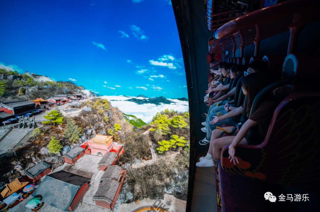 《飛越泰山》項(xiàng)目是目前全國(guó)最大的翻轉(zhuǎn)式飛行影院,2900㎡立體影院,可容納96人觀影。影視內(nèi)容以泰山及泰安地域文化為主旋律,通過(guò)多自由度動(dòng)感座椅與巨幕8K影視畫(huà)面結(jié)合,令游客仿佛乘坐飛行器置身高空凌空飛翔,從云海出發(fā),飛越泰山、泰安老街、天平湖景區(qū)等場(chǎng)景。飛越視角高低快慢,配合噴氣、噴水等特效,讓游客以虛擬沉浸方式飽覽五岳獨(dú)尊的壯麗巍峨。